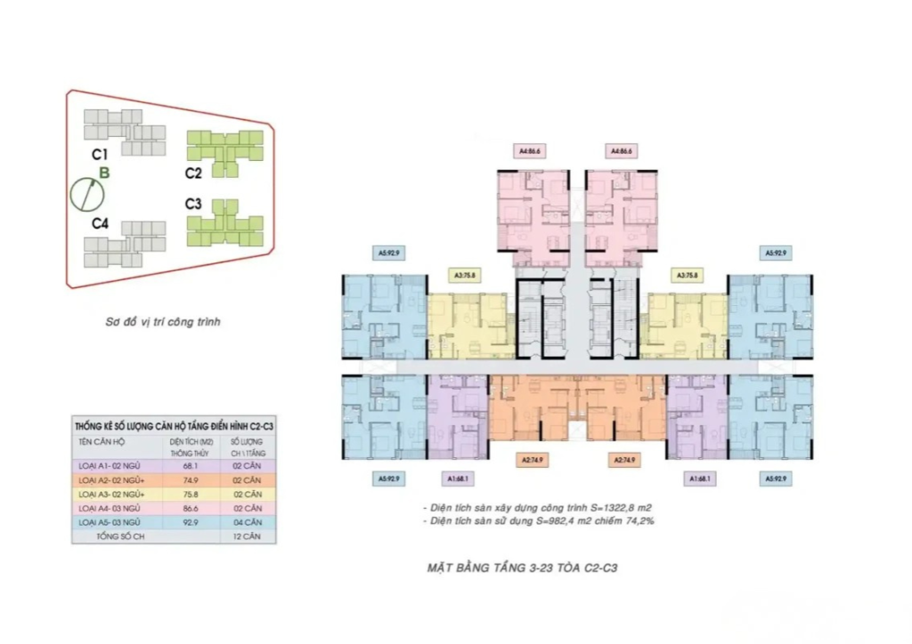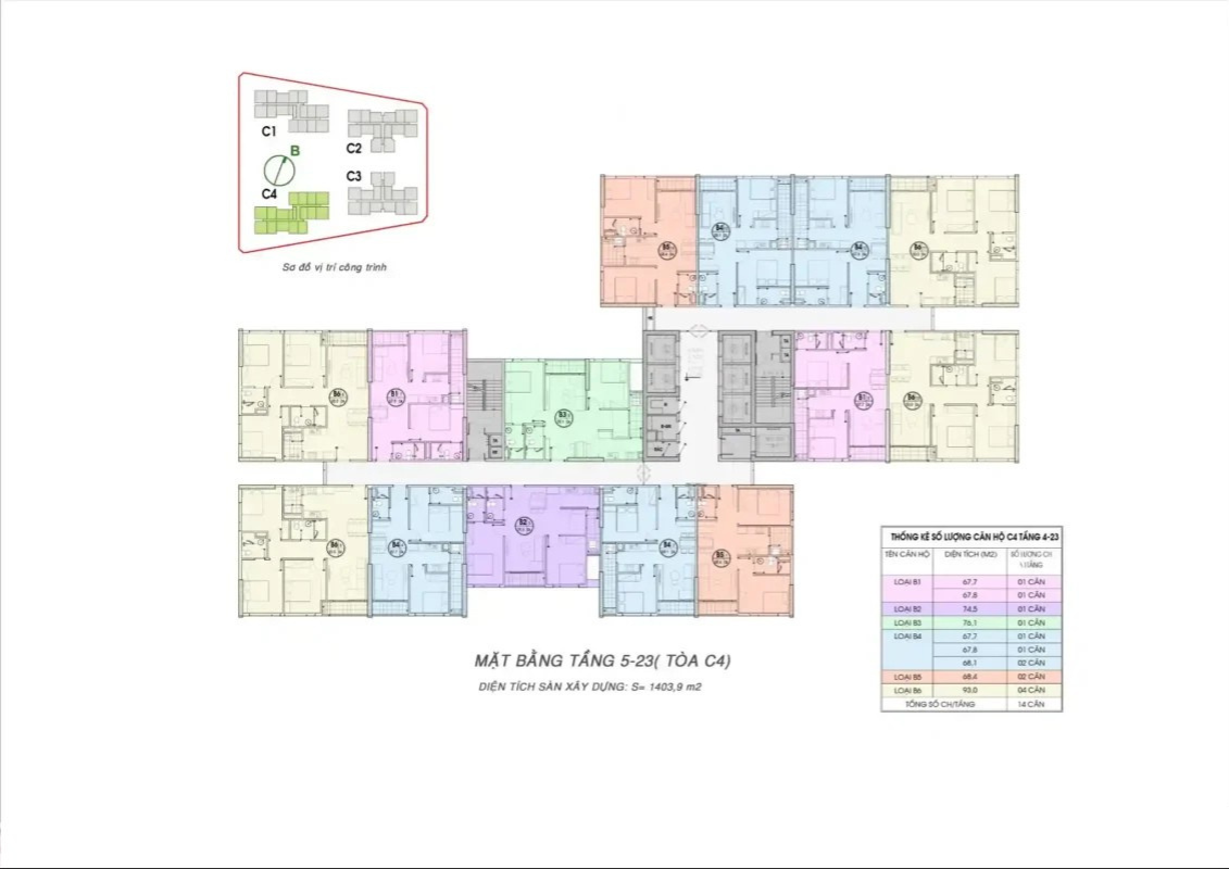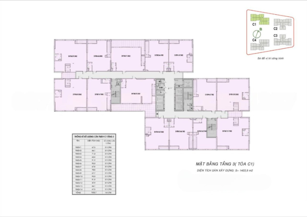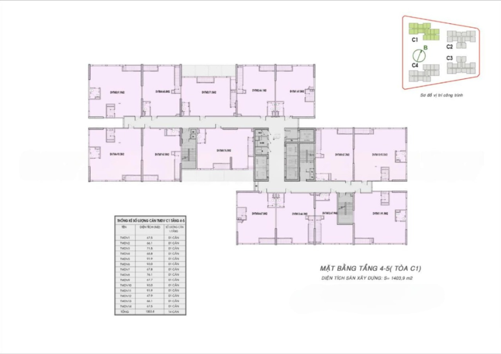 - Quy mô: 4 tòa chung cư cao cấp: C1, C2, C3, C4